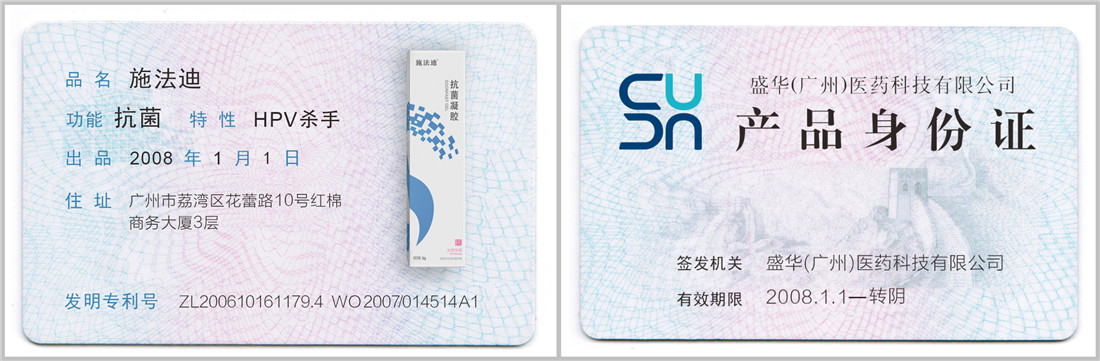 早在2005年,施法迪Ⓡ抗菌凝胶作为盛华医药科技抗HPV项目的一项重要研究成果就已研制成功,经过一系列的检测、实验、应用,在2007年国内率先推出可杀灭HPV病毒的产品。市场反响火爆引起了各种假冒伪劣产品的争相模仿,为保障广大消费者和患者的权益,盛华医药于2017年底决定暂停施法迪Ⓡ抗菌凝胶的生产,整肃市场。