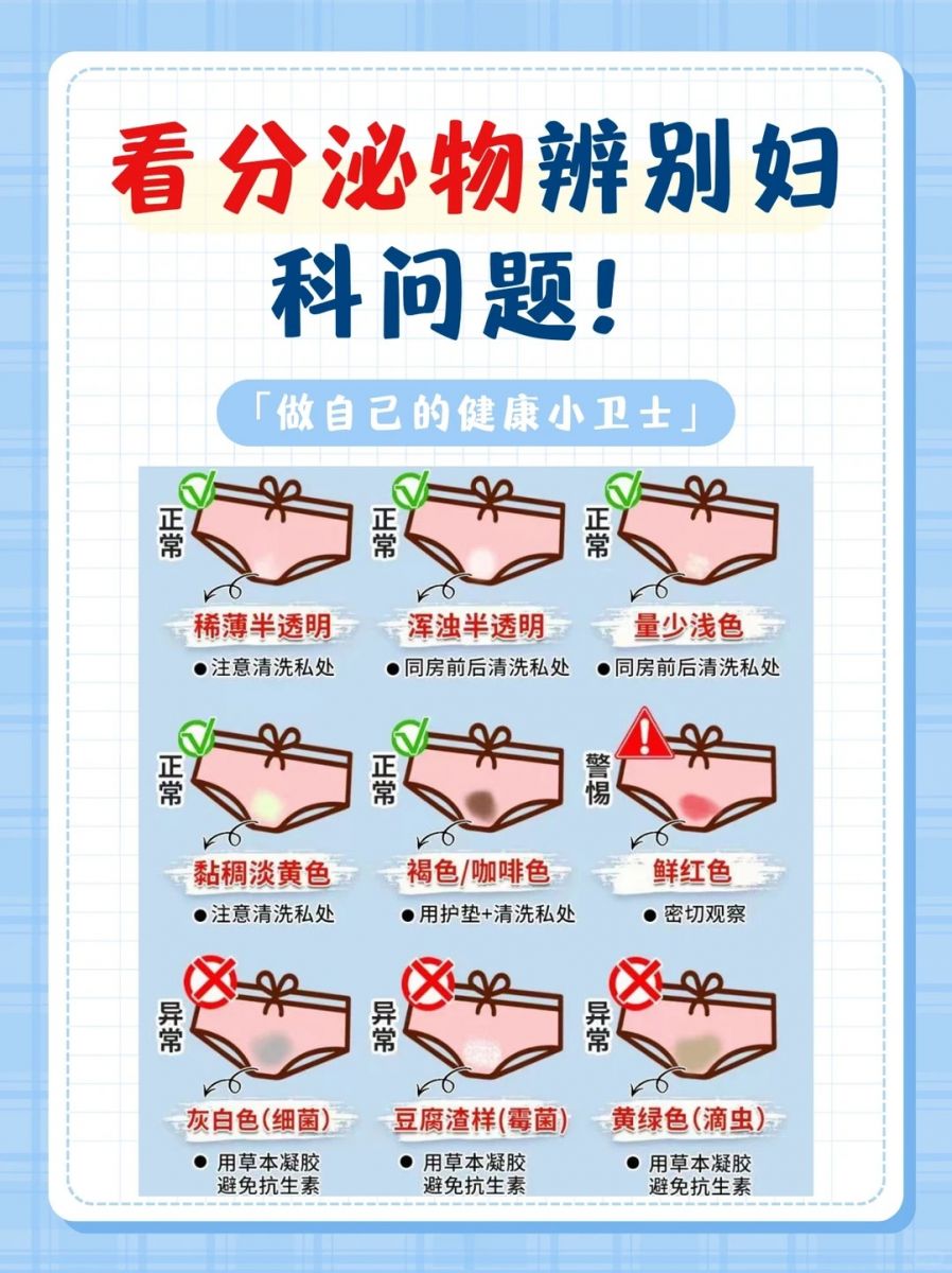 女生会习惯于每天看看自己的内裤,由此来判断自己是否会患妇科病,虽然这是一种不错的行为,但是需要学会准确区分和处理。 1⃣稀薄半透明 常见于卵泡期,私处通常不会有明显瘙痒及异味,这种情况不是人人都有,但是有了也不用太担心